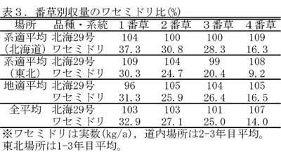 - 多回刈適性は「ワセミドリ」よりやや優れる(表1)。