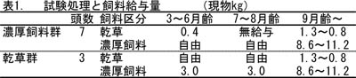 - 胃炎・肝膿瘍・横隔膜炎の初期疾患である第一胃不全角化症は、濃厚飼料多給の肥育期から仕上期に乾草1kg(/日)程度の摂取によって改善可能である(表1、2)。