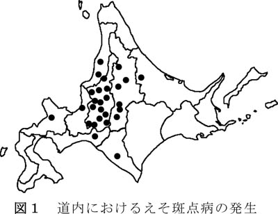 - 本病の発生は北海道の8支庁27市町村で認められている(図1)。