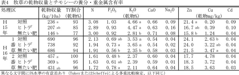 - 草地更新時にヒトデ混和たい肥を6t/10a施用すると、対照たい肥と同等の肥効を持ち、カドミウムの蓄積も認められないことから(表4)、草地更新時には従来の基準値(6t/10a)の施用で良いと考えられる。