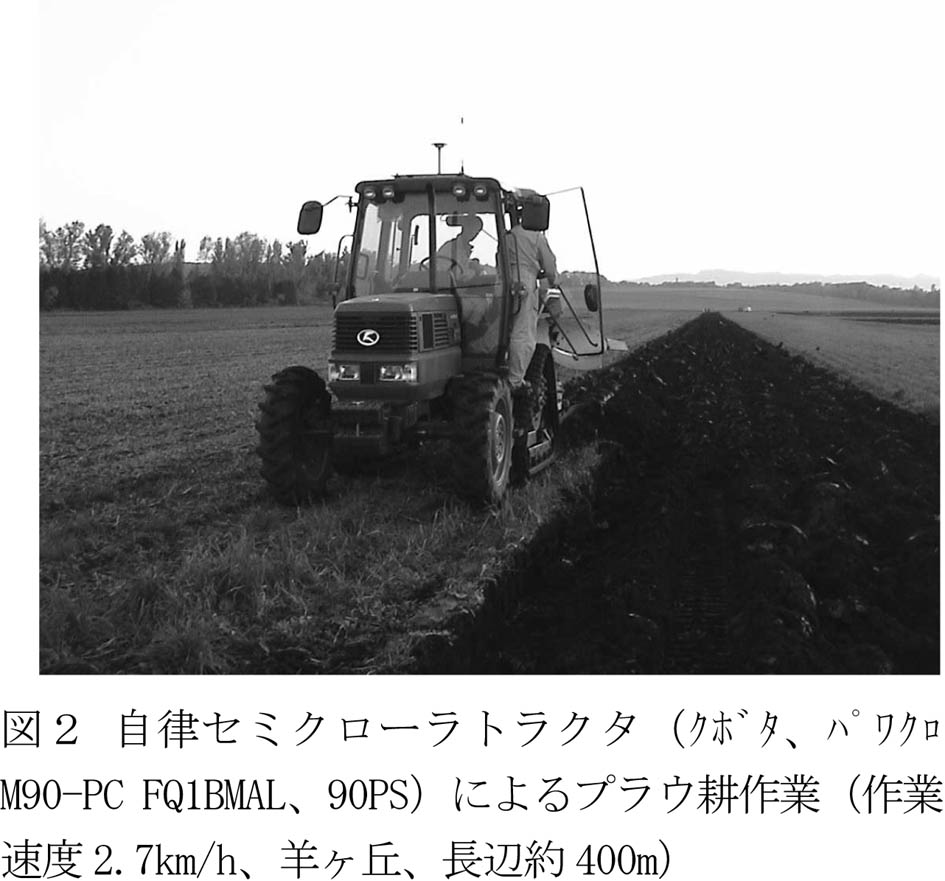 トラクタを改造し、GPSとジャイロを利用した自律機能を付加することにより、圃場の区画と作業幅に応じて自動で作業経路を生成し、高精度な往復直進作業が可能な自律作業支援システムである。次の工程への侵入、作業機の上げ下げ、PTOの入切も自動で、オペレータはエンジン回転数や変速比を調整するだけで作業に専念できる。