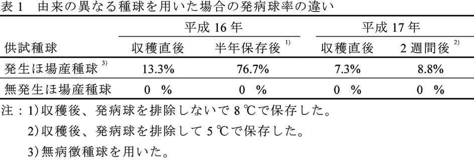 - 種球は外観無病徴でも本病によって汚染されている場合があり、注意が必要。