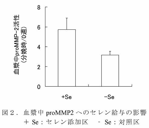ppmのセレンを添加すると、血漿中proMMP-2が高くなる傾向がみられる。 |