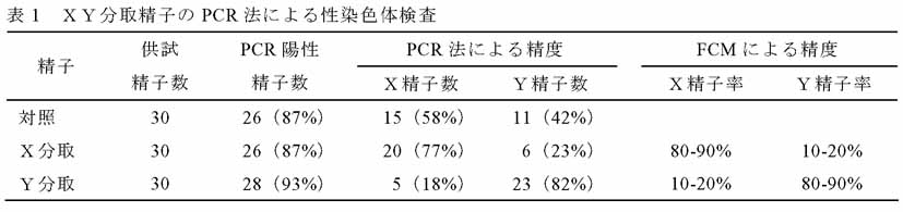 PCR法で、フローサイトメーターによる精子分取の精度を評価できる。黒毛和種の分取精子を用いた体外受精および人工授精により、子牛の性比を偏らせることができる。精子をクエン酸緩衝液で希釈し、MTG法で凍結することにより、生存性を向上できる。 |