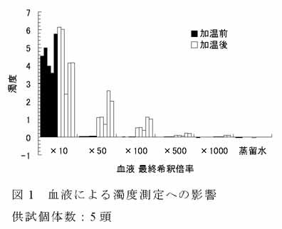- 血液最終希釈倍率が10〜500倍では、加温後に濁度が0.2を越えて上昇し、血液添加による濁度測定への影響がみられたが、1000倍では、加温前後ともに濁度の上昇は認められなかった(図1)。これより血液を最終1000倍で希釈し、濁度が0.2を越えた場合に雄特異的DNAが増幅された陽性反応と判定する。
