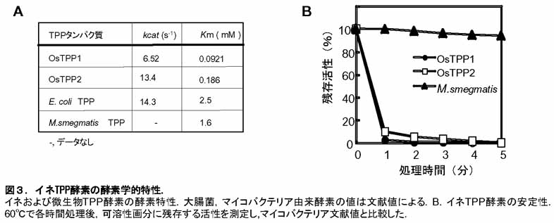 OsTPP2)は、基質特異性が高く、ミカエリス定数が小さい。これは細胞内での低い基質濃度を反映している(図3A)。
