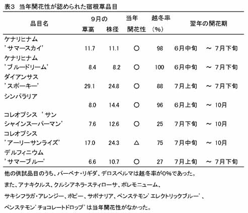 - 実生系の宿根草品目で、当年開花性および越冬性の高い品目は、ダイアンサス