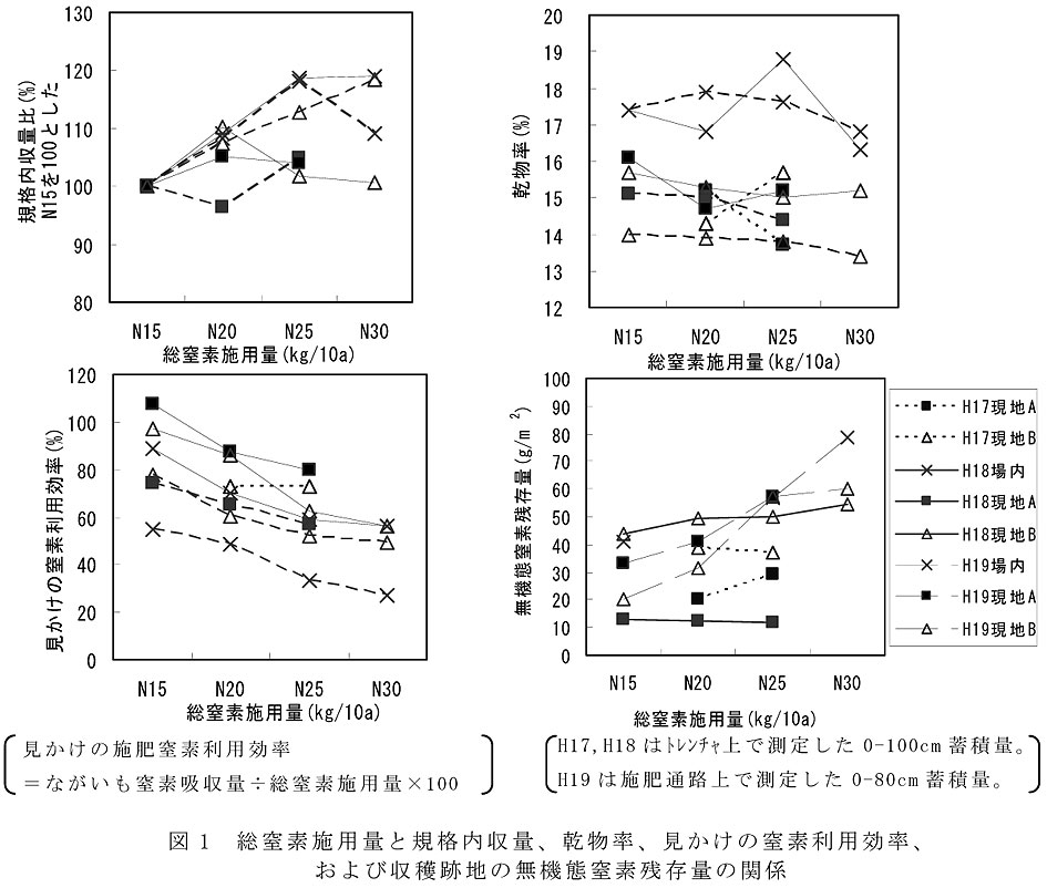 ながいも、規格内収量、土壌中無機態窒素残存量