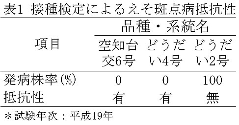 - 従来の抵抗性台木でも発病する圃場では、土壌還元消毒や輪作を行って菌密度を下げた後に「空知台交6号」を用いる。