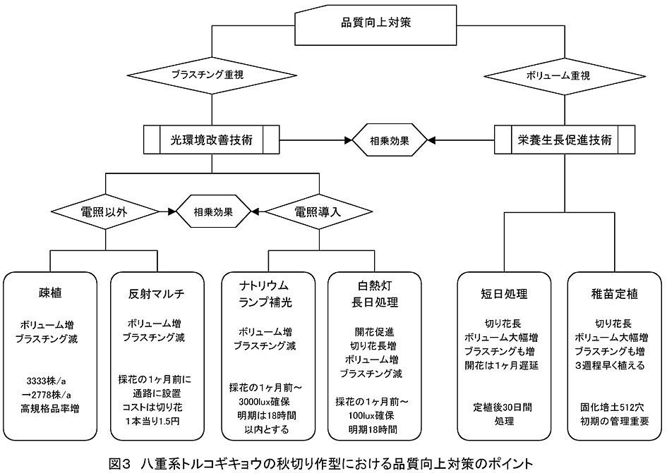 八重系トルコギキョウの秋切り作型における品質向上対策