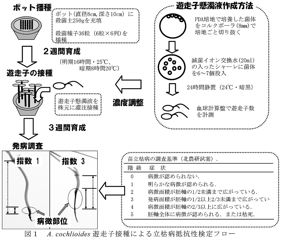 Aphanomyces cochlioides遊走子接種によるテンサイ苗立枯病抵抗性検定手法