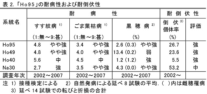 - すす紋病抵抗性、ごま葉枯病抵抗性および黒穂病抵抗性は、いずれも“やや強”である。耐倒伏性は“強”である(表2)。