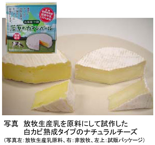放牧飼養された乳牛から生産された乳を原料とするナチュラルチーズ(白カビ熟成タイプ)は、色、香り、柔らかさで一般牛乳を原料とするものと差別化でき、特徴ある商品開発を目指す小規模工房にとって、魅力ある商品開発の素材として期待できる。