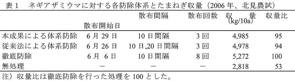 - ネギアザミウマ、タマネギ白斑葉枯病、薬剤防除、減農薬防除