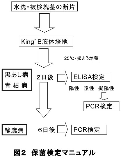 - 以上のことから、種いも生産現場での応用の一例として、図2に示す保菌検定マニュアルを提案する。