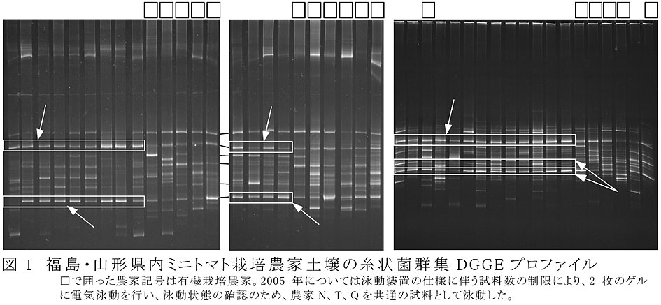 - 有機農業、土壌微生物、土壌糸状菌群集構造、DGGE(変性剤濃度勾配ゲル電気泳動)