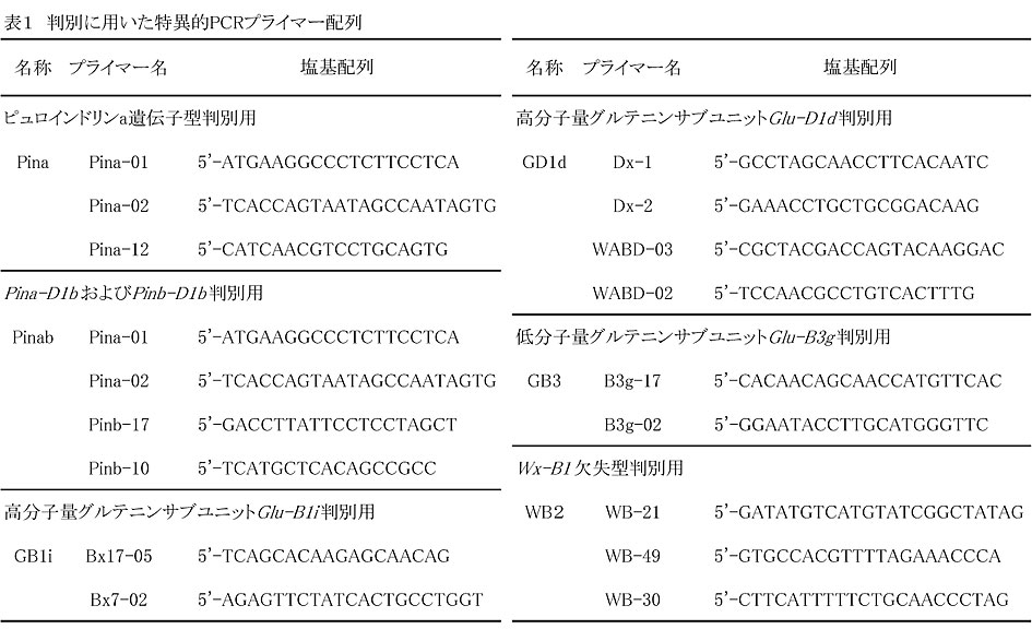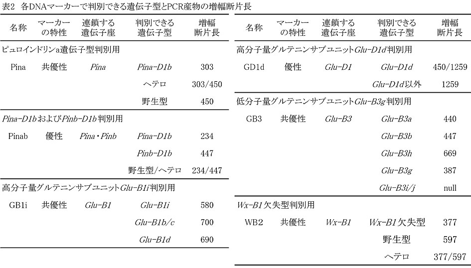 DNAマーカー、ピュロインドリン、グルテニン、Wx-B1欠失