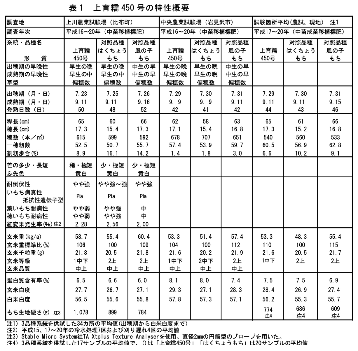 「水稲新品種候補「上育糯450号」」 (普及奨励)[具体的データ]