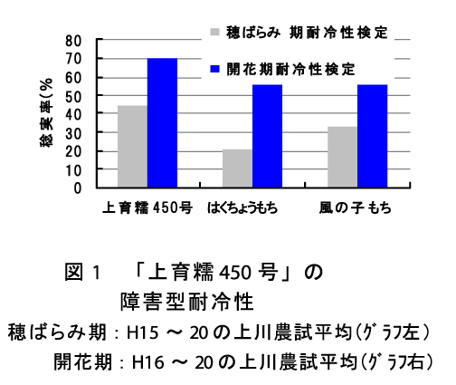 穂ばらみ期の耐冷性は「はくちょうもち」「風の子もち」より強い“極強”であり、 開花期耐冷性は“中〜やや強”である(図1)。