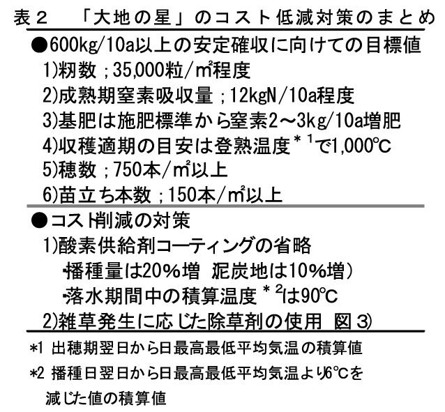 「水稲「大地の星」における湛水直播栽培のコスト低減」(普及推進)[具体的データ]
