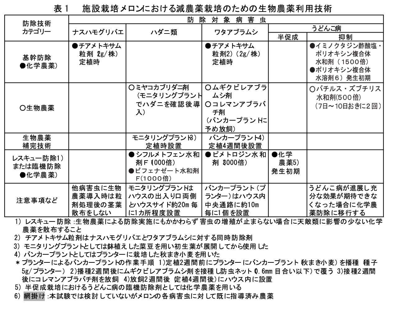 生物農薬を利用した施設栽培メロンの減農薬栽培技術