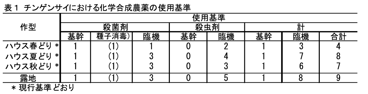化学合成農薬の使用基準をまとめて表1に示す。