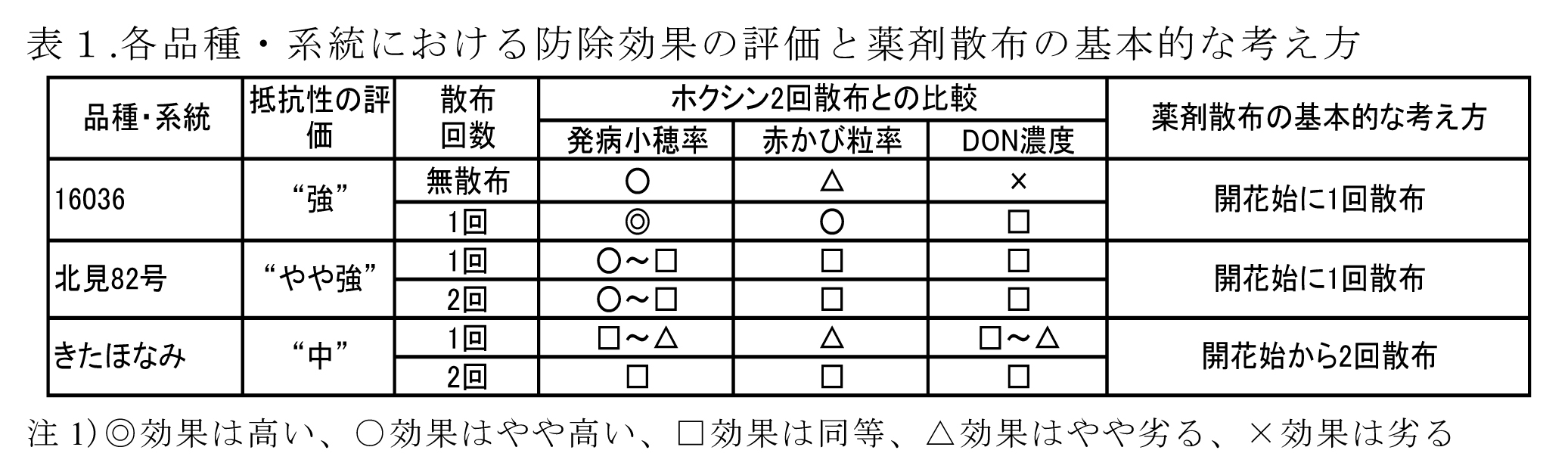 秋まき小麦品種の赤かび病抵抗性レベルに応じた薬剤防除の考え方