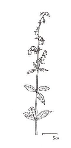 草原に生える多年草。8月頃釣鐘状の花を数段輪生。雌蕊の先端は後から開いて自家受粉を避ける。
