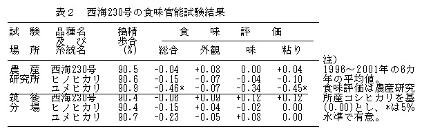 - 準奨励品種、晩生、良食味、西海230号、水稲、粳種