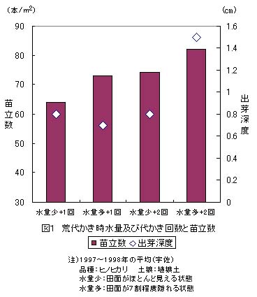 図1 荒代かき時水量及び代かき回数と苗立数率