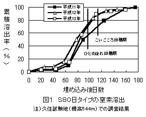 シグモイド型緩効性肥料を水稲に適用する場合には、出穂期までに80%程度の窒素が溶出し、かつ窒素溶出のピークが出穂前20日前後にあることが必要とされるため、窒素溶出のパターンからひとめぼれ級熟期品種には80日タイプ、こいごころ級熟期品種には100日タイプが適合する(図1、図2、図3)。