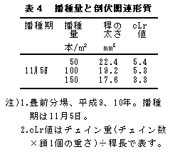 表4 播種量と倒伏関連形質