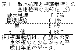 表1 散水処理と標準栽培との凸腹粒率の比較(n=12)
