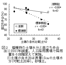 図2 播種時の土壌水分と苗立ち歩合