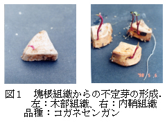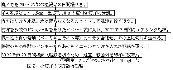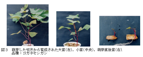 研究課題名:塊根小切片の利用による甘しょ苗育成技術の開発 予算区分 :経常 研究期間 :1997〜2000年度