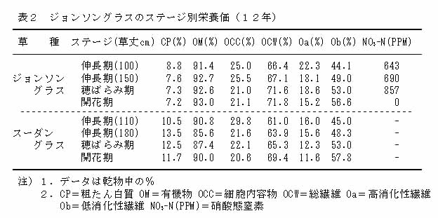 表2 ジョンソングラスのステージ別栄養価(12年)