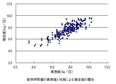 図3 乾物摂取量の実測値と体高による推定値の関係
