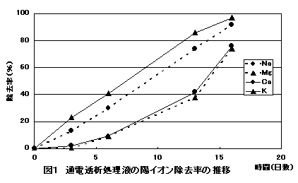 図1 通電透析処理液の陽イオン除去率の推移