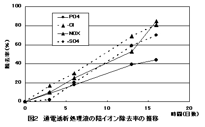 図2 通電透析処理液の陰イオン除去率の推移