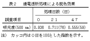 表2 通電透析処理による脱色効果