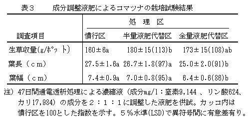 表3 成分調整液肥によるコマツナの栽培試験結果