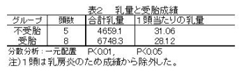 表2 乳量と受胎成績