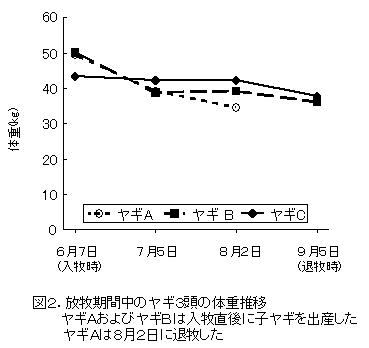 ヤギの体重は出産等によりやや減少するが、脱柵もなく健康である(図2、図3)。