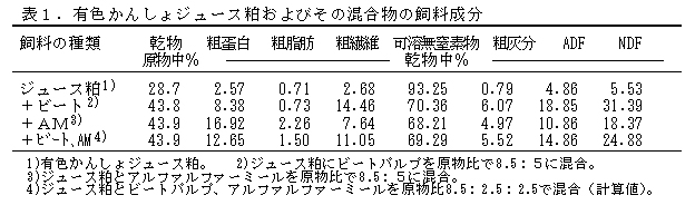 表1 有色かんしょ粕およびその混合物の飼料成分