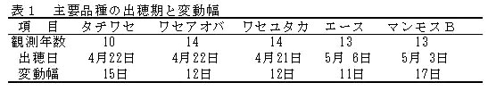 表1 主要品種の出穂期と変動幅