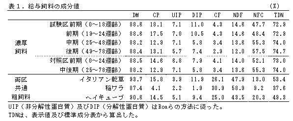 表1 給与飼料の成分値