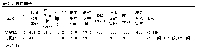 表2 枝肉成績