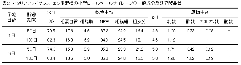 表2 イタリアンライグラス・エン麦混播の小型ロールベールサイレージの一般成分及び発酵品質