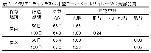 表3 イタリアンライグラスの小型ロールベールサイレージの発酵品質