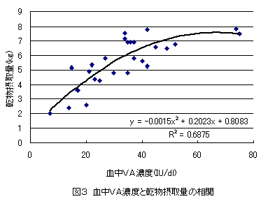 図3 血中VA濃度と乾物摂取量の相関